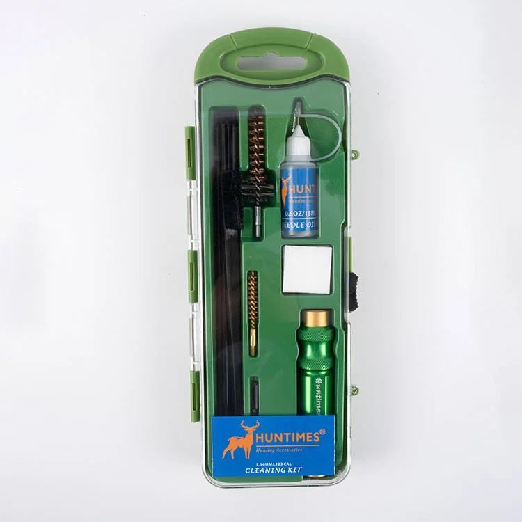 Alüminyum Alaşımlı 5.56MM 223 Cal Tabanca Temizleme Kiti, 5.56mm/.223 temizliği için bir dizi araç içerir. Temizleme fırçaları, temizleme çubukları, temizleme yamaları vb. gibi 223 kalibrelik tabancalar. Bu aletler, tabancanın doğruluğunu ve güvenilirliğini sağlamak için tabancanın içindeki barut kalıntısını, kiri ve gresi tamamen temizleyebilir.