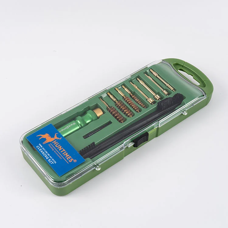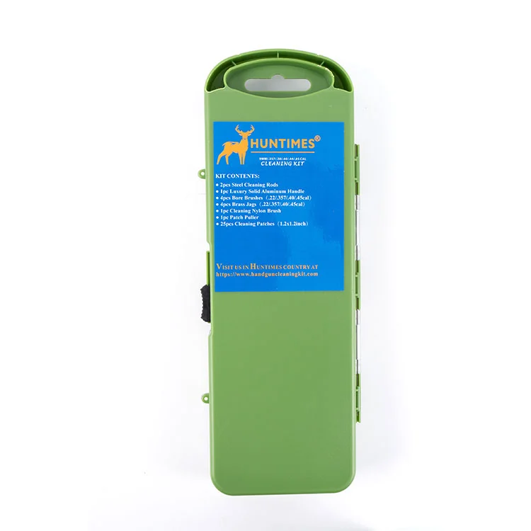 Alüminyum Alaşımlı Tabanca Temizleme Kitimiz 2 adet çelik çubuk, 1 adet lüks alüminyum sap, 4 adet çaplı fırça (.22/.357/.40/.45), 4 adet pirinç uç (.22/.357/.40/.45), 1 adet naylon temizleme fırçası, 1 adet yama çektirmesi ve 25x1.25 mm'lik 25x1.5 mm'den oluşmaktadır. 2x1. 2 adet temizleme yaması. Optimum performans ve uzun süreli dayanıklılık için tasarlanmıştır. Kutunun ön yüzündeki kulp logosu, sticker logosu ve arka yüzündeki ürün detay logosu ihtiyaçlarınıza göre tasarlanabilmektedir. Bize danışmaya hoş geldiniz!